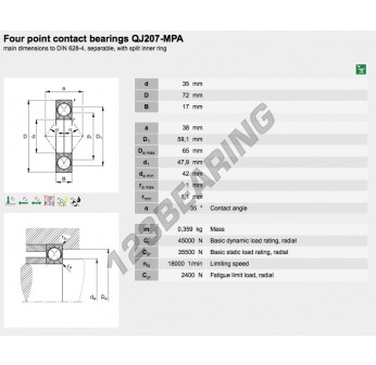 Das Rillenkugellager, bekannt als QJ207-MPA-FAG FAG, hat einen Innendurchmesser von 35 mm, einen Außendurchmesser von 72 mm und eine Dicke von 17 mm.