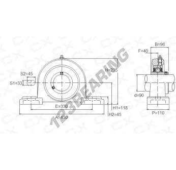 Das Stehlagereinheiten / Flanschlagereinheiten 2- Loch bekannt als UCP318 Generisches, hat einen Wellendurchmesser von 90 mm und einen Befestigungsabstand von 330 mm. Diese Referenz wird aus Gusseisen hergestellt und der Klemmtyp ist .