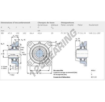 Das Stehlagereinheiten / Flanschlagereinheiten 4- Loch bekannt als FY55-TR-SKF SKF, hat einen Wellendurchmesser von 55 mm und einen Befestigungsabstand von 130 mm. Diese Referenz wird aus Gusseisen hergestellt und der Klemmtyp ist .
