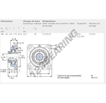 Das Stehlagereinheiten / Flanschlagereinheiten 4- Loch bekannt als FYJ60-KF-SKF SKF, hat einen Wellendurchmesser von 55 mm und einen Befestigungsabstand von 143 mm. Diese Referenz wird aus Gusseisen hergestellt und der Klemmtyp ist .