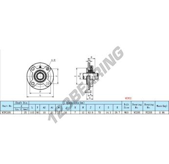 Das Stehlagereinheiten / Flanschlagereinheiten 4- Loch bekannt als UCFC205-INOX Generisches, hat einen Wellendurchmesser von 25 mm und einen Befestigungsabstand von 63.6 mm. Diese Referenz wird aus INOX hergestellt und der Klemmtyp ist .