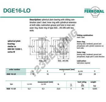 Das Gelenklager Ge bekannt als DGE16-LO-DURBAL DURBAL hat einen Innendurchmesser von 16 mm, einen Außendurchmesser von 28 mm und einer Dicke von 9 mm.