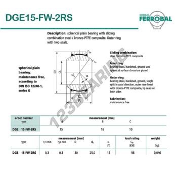 Das Gelenklager Geew bekannt als DGE15-FW-2RS-DURBAL DURBAL hat einen Innendurchmesser von 15 mm, einen Außendurchmesser von 30 mm und einer Dicke von 10 mm.
