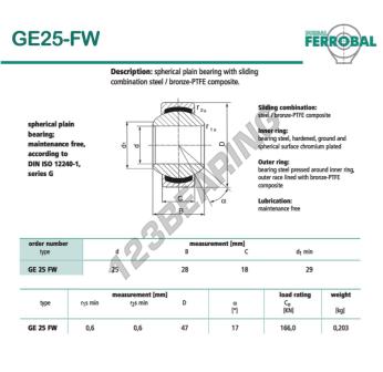 Das Gelenklager Geew bekannt als GE25-FW-DURBAL DURBAL hat einen Innendurchmesser von 25 mm, einen Außendurchmesser von 47 mm und einer Dicke von 18 mm.