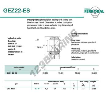 Das Gelenklager Geew bekannt als GEZ22-ES-DURBAL DURBAL hat einen Innendurchmesser von 22.225 mm, einen Außendurchmesser von 36.513 mm und einer Dicke von 16.662 mm.