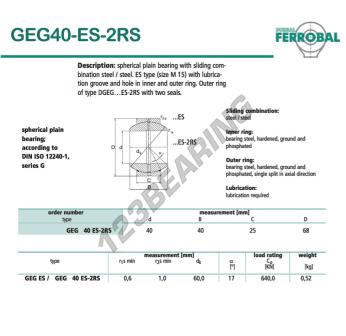 Das Gelenklager Geg bekannt als GEG40-ES-2RS-DURBAL DURBAL hat einen Innendurchmesser von 40 mm, einen Außendurchmesser von 68 mm und einer Dicke von 25 mm.