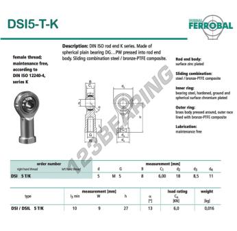 Das Gelenkköpfe Si bekannt als SI5-T-K-DURBAL DURBAL hat einen Innendurchmesser von 5 mm, einen Außendurchmesser von 18 mm und einer Dicke von 8 mm.