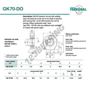 Die Gelenkköpfe Tpn bekannt als DGK70-DO-DURBAL DURBAL hat einen Innendurchmesser von 70 mm, einen Außendurchmesser von 160 mm und eine Dicke von 49 mm.