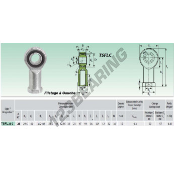 Die Gelenkköpfe Tsf bekannt als TSFL025-C Generisches, hat eine Gewindesteigung von , einen Innendurchmesser von 25 mm, einen Außendurchmesser von 47 mm und eine Dicke von 31 mm.