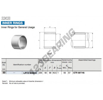 Das Innenringe bekannt als LRTZ505845-IKO IKO, hat einen Innendurchmesser von 50 mm, einen Außendurchmesser von 58 mm und eine Länge von 45.5 mm. Sie wird aus hergestellt.