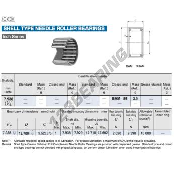 Das Nadelhülsenlager, bekannt als BAM56-IKO IKO, hat einen Innendurchmesser von 7.94 mm, einen Außendurchmesser von 12.7 mm und eine Dicke von 9.52 mm.