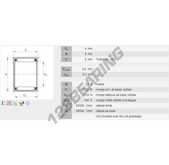 Das Nadelhülsenlager, bekannt als BK0408-INA INA, hat einen Innendurchmesser von 4 mm, einen Außendurchmesser von 8 mm und eine Dicke von 8 mm.