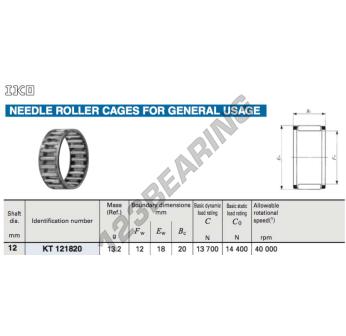 Das Nadelkränze , bekannt als KT121820C3-IKO IKO, hat einen Innendurchmesser von 12 mm, einen Außendurchmesser von 18 mm und eine Dicke von 20 mm.