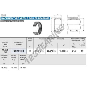 Das Axial-nadellager , bekannt als BR101812-IKO IKO, hat einen Innendurchmesser von 15.875 mm, einen Außendurchmesser von 28.575 mm und eine Dicke von 19.05 mm.