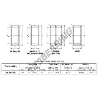 Das Axial-nadellager , bekannt als NK5025A-JTEKT JTEKT, hat einen Innendurchmesser von 50 mm, einen Außendurchmesser von 62 mm und eine Dicke von 25 mm.