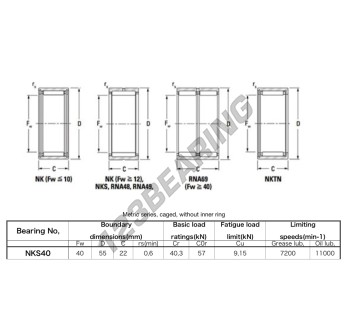 Das Axial-nadellager , bekannt als NKS40-JTEKT JTEKT, hat einen Innendurchmesser von 40 mm, einen Außendurchmesser von 55 mm und eine Dicke von 22 mm.