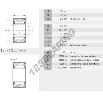Das Axial-nadellager , bekannt als PNA20-42-INA INA, hat einen Innendurchmesser von 20 mm, einen Außendurchmesser von 42 mm und eine Dicke von 20 mm.