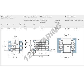 Das Axialrillenkugellager, bekannt als 54312-SKF SKF, hat einen Innendurchmesser von 50 mm, einen Außendurchmesser von 110 mm und eine Dicke von 70.7 mm.