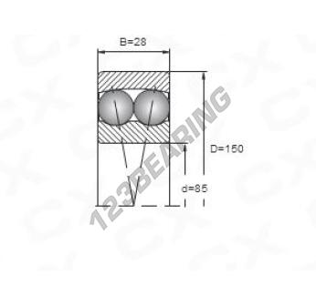 Das Rillenkugellager, bekannt als 1217 Generisches, hat einen Innendurchmesser von 85 mm, einen Außendurchmesser von 150 mm und eine Dicke von 28 mm.