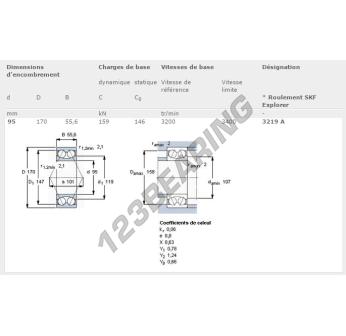 Das Rillenkugellager, bekannt als 3219-A-SKF SKF, hat einen Innendurchmesser von 95 mm, einen Außendurchmesser von 170 mm und eine Dicke von 55.6 mm.