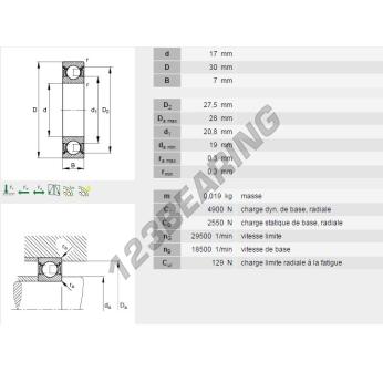 Das Rillenkugellager, bekannt als 61903-ZZ-INA INA, hat einen Innendurchmesser von 17 mm, einen Außendurchmesser von 30 mm und eine Dicke von 7 mm.