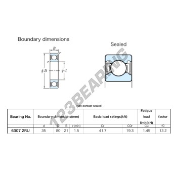 Das Rillenkugellager, bekannt als 6307-2RU-JTEKT JTEKT, hat einen Innendurchmesser von 35 mm, einen Außendurchmesser von 80 mm und eine Dicke von 21 mm.