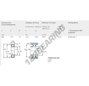 Das Rillenkugellager, bekannt als 6316-ZZ-SKF SKF, hat einen Innendurchmesser von 80 mm, einen Außendurchmesser von 170 mm und eine Dicke von 39 mm.