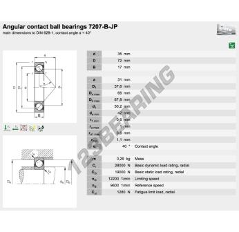 Das Rillenkugellager, bekannt als 7207-B-XL-JP-FAG FAG, hat einen Innendurchmesser von 35 mm, einen Außendurchmesser von 72 mm und eine Dicke von 17 mm.