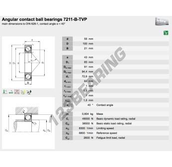 Das Rillenkugellager, bekannt als 7211-B-XL-TVP-FAG FAG, hat einen Innendurchmesser von 55 mm, einen Außendurchmesser von 100 mm und eine Dicke von 21 mm.