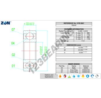 Das Rillenkugellager, bekannt als HYB-6901-ZEN ZEN, hat einen Innendurchmesser von 12 mm, einen Außendurchmesser von 24 mm und eine Dicke von 6 mm.