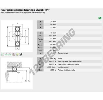 Das Rillenkugellager, bekannt als QJ308-XL-TVP-FAG FAG, hat einen Innendurchmesser von 40 mm, einen Außendurchmesser von 90 mm und eine Dicke von 23 mm.