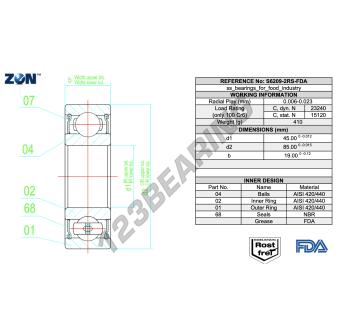 Das Rillenkugellager, bekannt als S6209-2RS-FDA-AISI420-ZEN ZEN, hat einen Innendurchmesser von 45 mm, einen Außendurchmesser von 85 mm und eine Dicke von 19 mm.