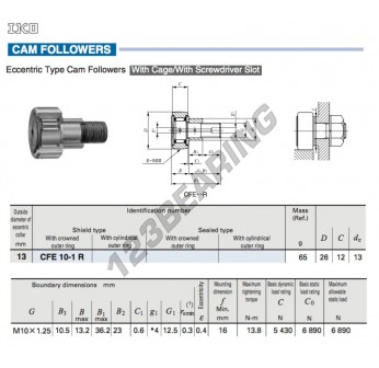 Das Kurvenrollen, bekannt als CFE10-1-R-IKO IKO, hat einen Innendurchmesser von 13 mm, einen Außendurchmesser von 26 mm und eine Dicke von 12 mm.