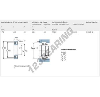 Das Pendelkugellager, bekannt als 2315-K-SKF SKF, hat einen Innendurchmesser von 75 mm, einen Außendurchmesser von 160 mm und eine Dicke von 55 mm.