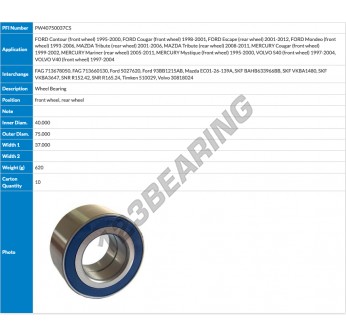 Das Zweireihige Schrägkugellager, bekannt als PW40750037CS-PFI PFI, hat einen Innendurchmesser von 40 mm, einen Außendurchmesser von 75 mm und eine Dicke von 37 mm.