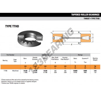 Das Rollenlager, bekannt als T1750-TIMKEN TIMKEN, hat einen Innendurchmesser von 44.45 mm, einen Außendurchmesser von 84.734 mm und eine Dicke von 18.258 mm.