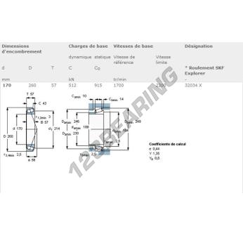 Das Kegelrollenlager, bekannt als 32034X-SKF SKF, hat einen Innendurchmesser von 170 mm, einen Außendurchmesser von 260 mm und eine Dicke von 57 mm.