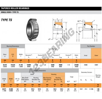 Das Kegelrollenlager, bekannt als 42362-42587-TIMKEN TIMKEN, hat einen Innendurchmesser von 92.075 mm, einen Außendurchmesser von 149.225 mm und eine Dicke von 31.75 mm.