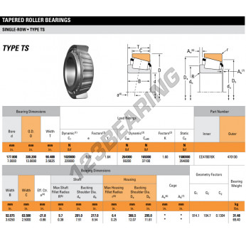 Das Kegelrollenlager, bekannt als EE470078X-470130-TIMKEN TIMKEN, hat einen Innendurchmesser von 177.8 mm, einen Außendurchmesser von 330.2 mm und eine Dicke von 90.488 mm.