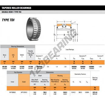 Das Kegelrollenlager, bekannt als NP726553-NP137813-TIMKEN TIMKEN, hat einen Innendurchmesser von 600 mm, einen Außendurchmesser von 1170 mm und eine Dicke von 510 mm.