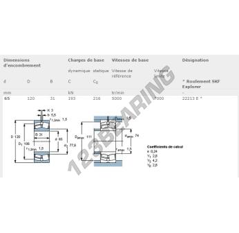Das Pendelrollenlager, bekannt als 22213-E-SKF SKF, hat einen Innendurchmesser von 65 mm, einen Außendurchmesser von 120 mm und eine Dicke von 31 mm.