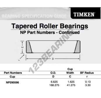 Das Schüssel, bekannt als NP290596-TIMKEN TIMKEN, hat einen Innendurchmesser von mm, einen Außendurchmesser von 168.275 mm und eine Dicke von 41.275 mm.