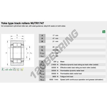 Das Vierpunktlager, bekannt als NUTR1747-A-INA INA, hat einen Innendurchmesser von 17 mm, einen Außendurchmesser von 47 mm und eine Dicke von 21 mm.