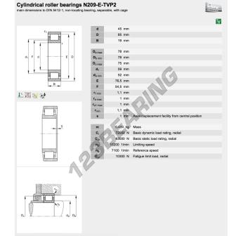 Das Rollenlager, bekannt als N209-E-XL-TVP2-C3-FAG FAG, hat einen Innendurchmesser von 45 mm, einen Außendurchmesser von 85 mm und eine Dicke von 19 mm.