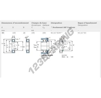 Das Rollenlager, bekannt als NJ217-ECM-SKF SKF, hat einen Innendurchmesser von 85 mm, einen Außendurchmesser von 150 mm und eine Dicke von 28 mm.