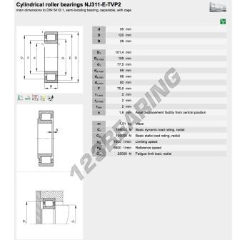 Das Rollenlager, bekannt als NJ311-E-XL-TVP2-FAG FAG, hat einen Innendurchmesser von 55 mm, einen Außendurchmesser von 120 mm und eine Dicke von 29 mm.