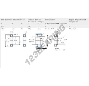 Das Rollenlager, bekannt als NU221-ECP-SKF SKF, hat einen Innendurchmesser von 105 mm, einen Außendurchmesser von 190 mm und eine Dicke von 36 mm.