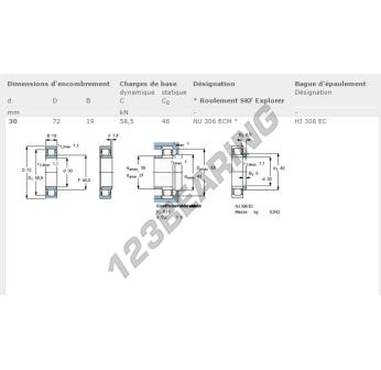 Das Rollenlager, bekannt als NU306-ECM-SKF SKF, hat einen Innendurchmesser von 30 mm, einen Außendurchmesser von 72 mm und eine Dicke von 19 mm.