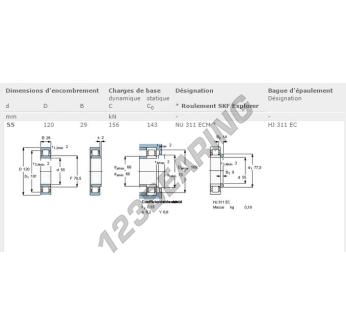 Das Rollenlager, bekannt als NU311-ECM-SKF SKF, hat einen Innendurchmesser von 55 mm, einen Außendurchmesser von 120 mm und eine Dicke von 29 mm.