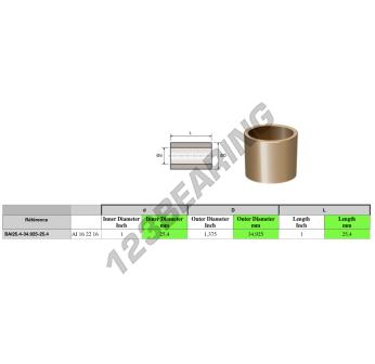 Das Bronze Gleitlager bekannt als BAI25.400-34.925-25.400 Generisches, hat einen Innendurchmesser von 25.4 mm, einen Außendurchmesser von 34.925 mm und eine Länge von 25.4 mm. Sie wird aus hergestellt.